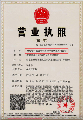 2015年05月07日,潍坊专利巴巴专利商标申请代理有限公司注册成立。
